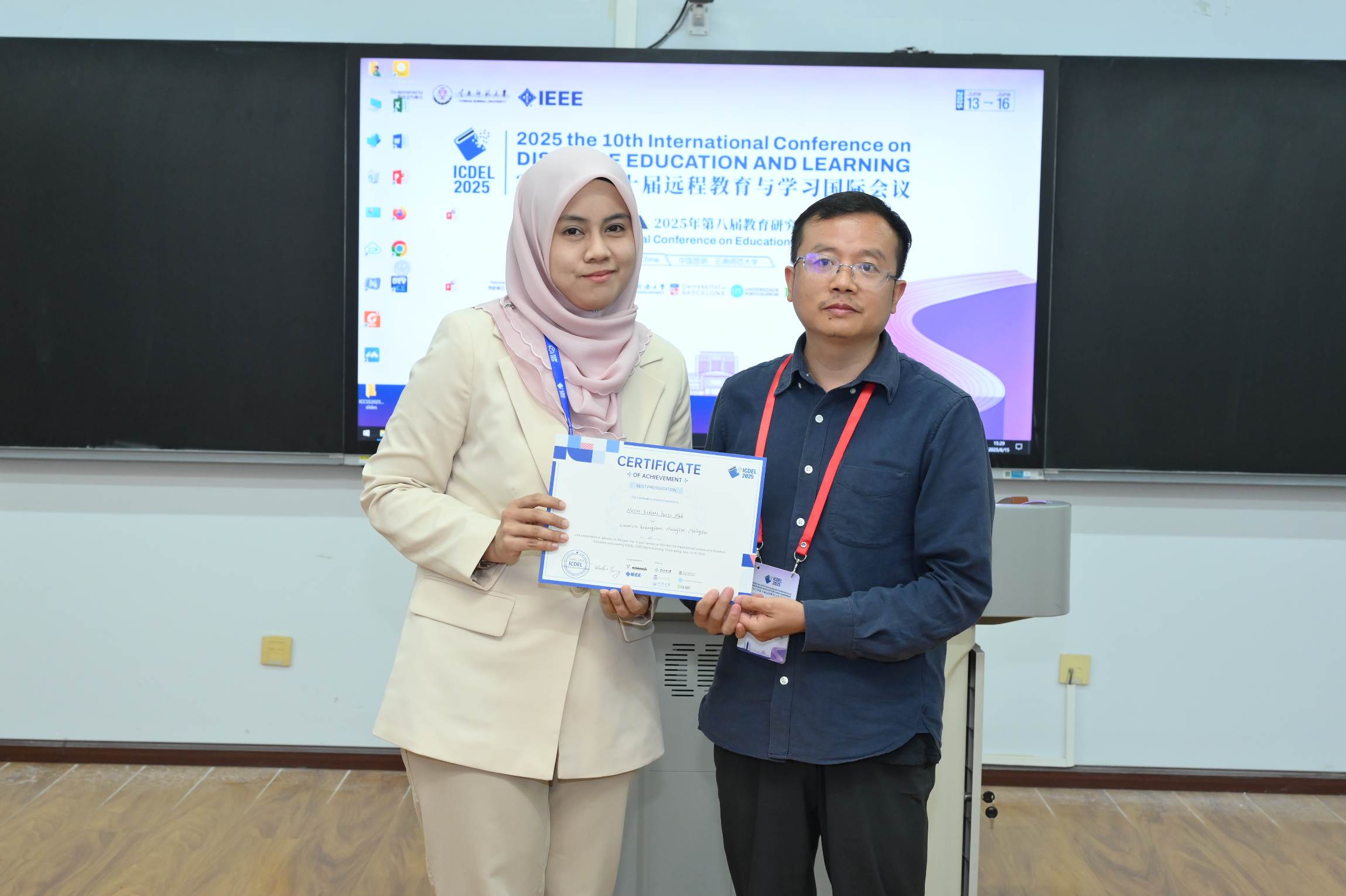 Meanwhile, there were 9 onsite sessions and 2 special sessions and 6 online sessions for authors' presentations from June 13-16, 2025. These sessions' topics were Online Education and Blended Learning; Artificial Intelligence in Education and Educational Robots; Digitalization of Education and Distance Education; Diversification of Education and the Future Development; Technology-Enhanced Teaching and Mobile Learning; Educational Data Mining and Human-Machine Collaborative Learning; Distance Education and Virtual Learning, etc. After sessions ends, the best student paper award was announced at dinner banquet.